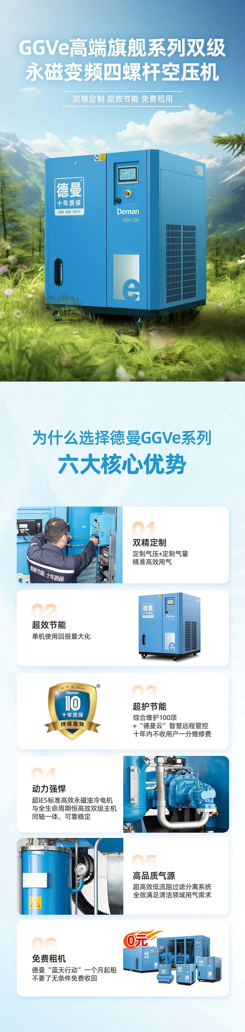 德曼雙螺桿空壓機型號GGVe系列的設計與制造以不計成本代價追求節(jié)能,專為客戶提供更高品質、更低成本的壓縮空氣及更高產效的用氣方案,是客戶選擇買氣的理想雙螺桿空壓機。